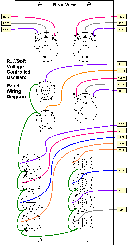 oscillator providing the sync signal and the oscillator being synced are mixed. Panel mounted pots