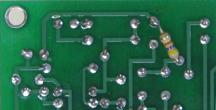 This resistor stabilizes the ext signal amplifier. See next image for the relative area of the board for this kludge.