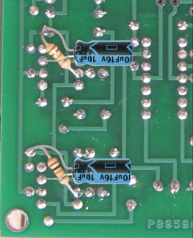 These resistors stabilize the headphone amplifier inputs. See next image for the relative area of the board for this kludge.