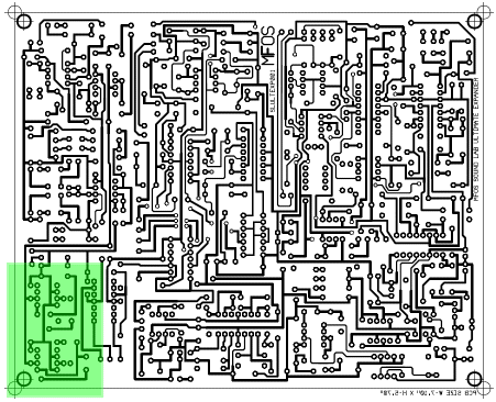 Relative area of kludge. Viewing PC board from the bottom